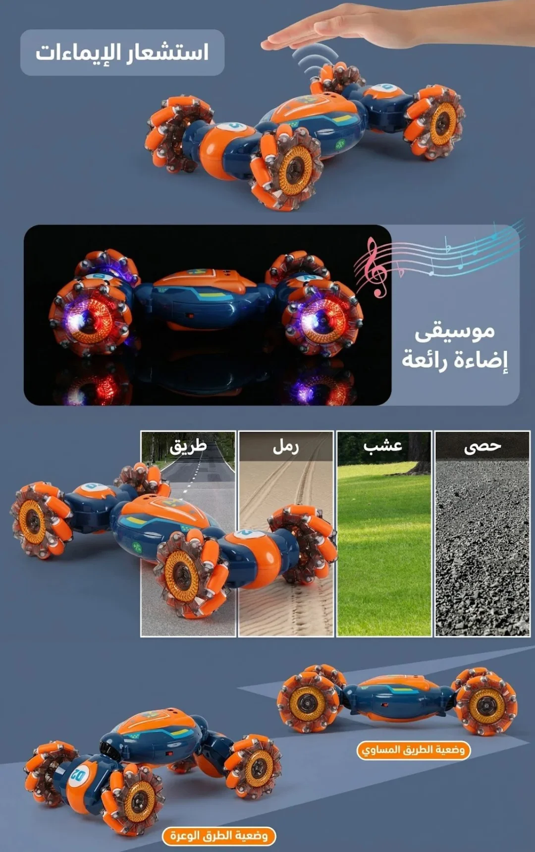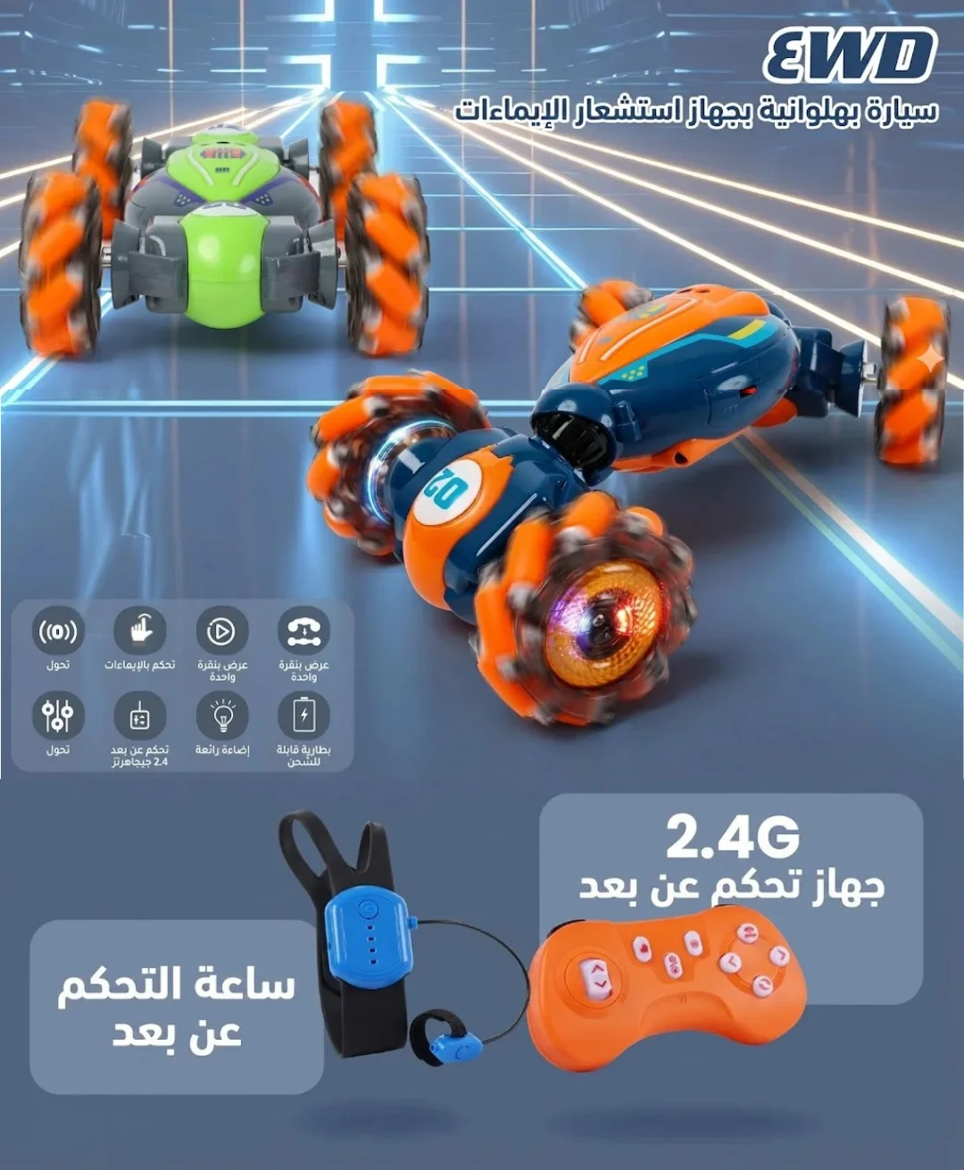 - سيارة بهلوانية بتحرّك الطفل وتخلّيه ينسى الشاشات.