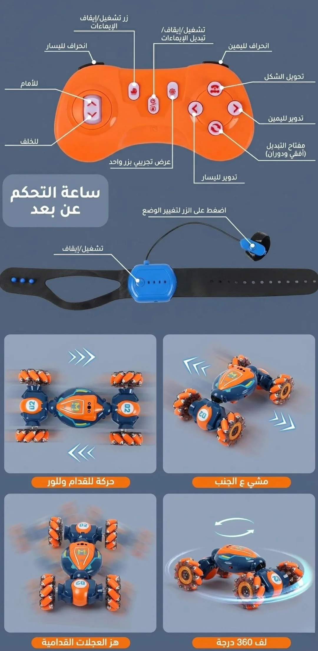 - 🎮 تحكّم مزدوج (Remote + سوار يد)